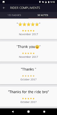 Uber riders' compliments